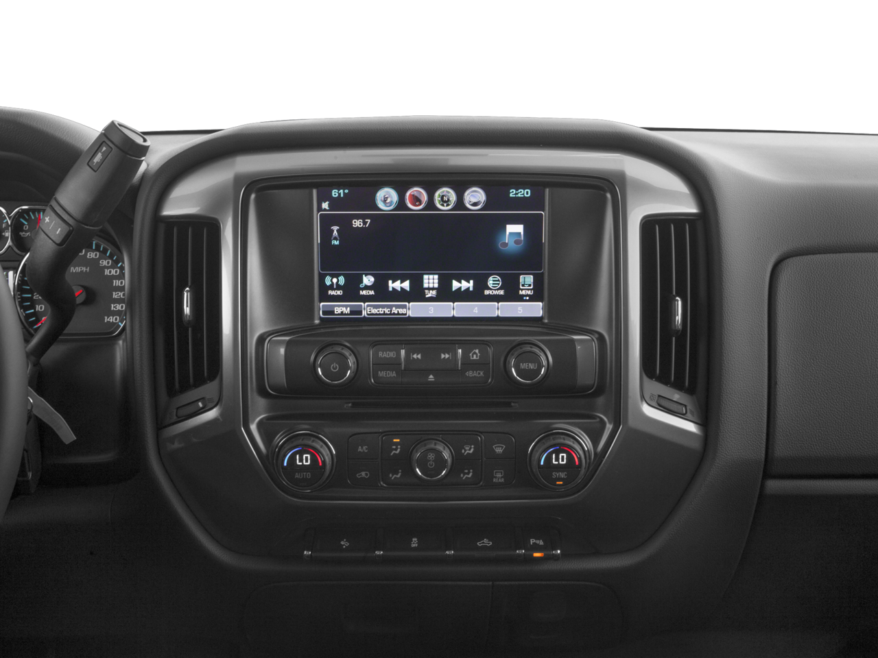 - Audio system, Chevrolet MyLink Radio with 8" diagonal color touch-screen, AM/FM stereo with seek-and-scan and digital clock, includes Bluetooth streaming audio for music and select phones; USB ports; auxiliary jack; voice-activated technology for radio and phone